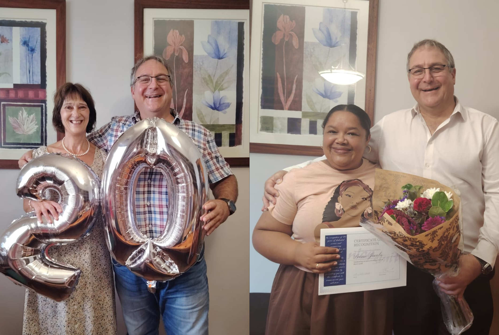 Nico Smit Prokureurs kan tereg spog met hierdie twee gewaardeerde lede van die personeel en word hulle twee se toewyding aan die praktyk opreg waardeer. Me Jacobs en Me De Swardt word bedank vir 20 jaar van onwrikbare lojaliteit en uitstekende diens aan die firma. Die firma hoop om beide nog lank by ons te hê.